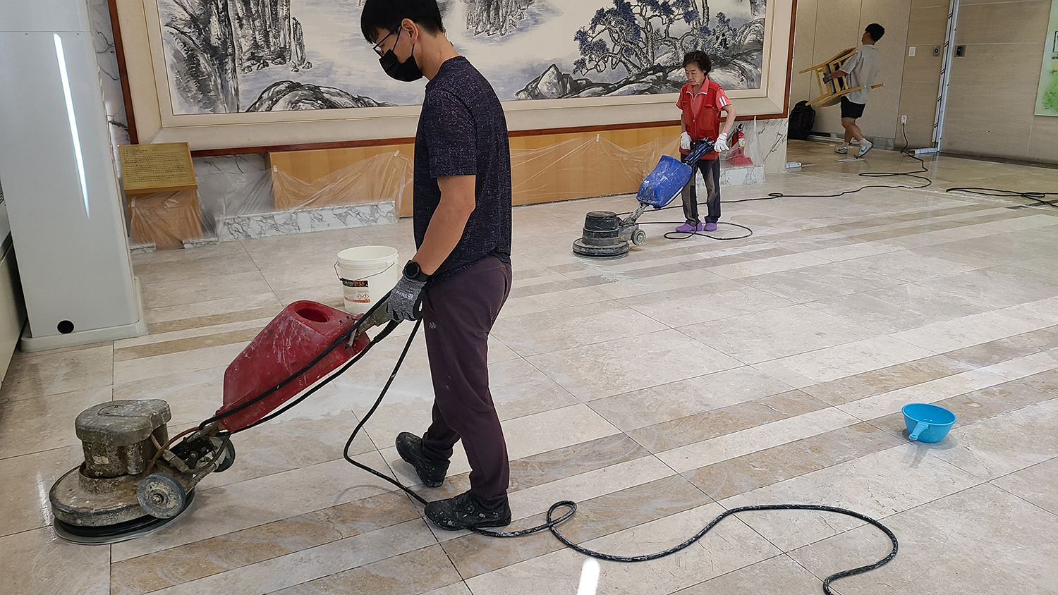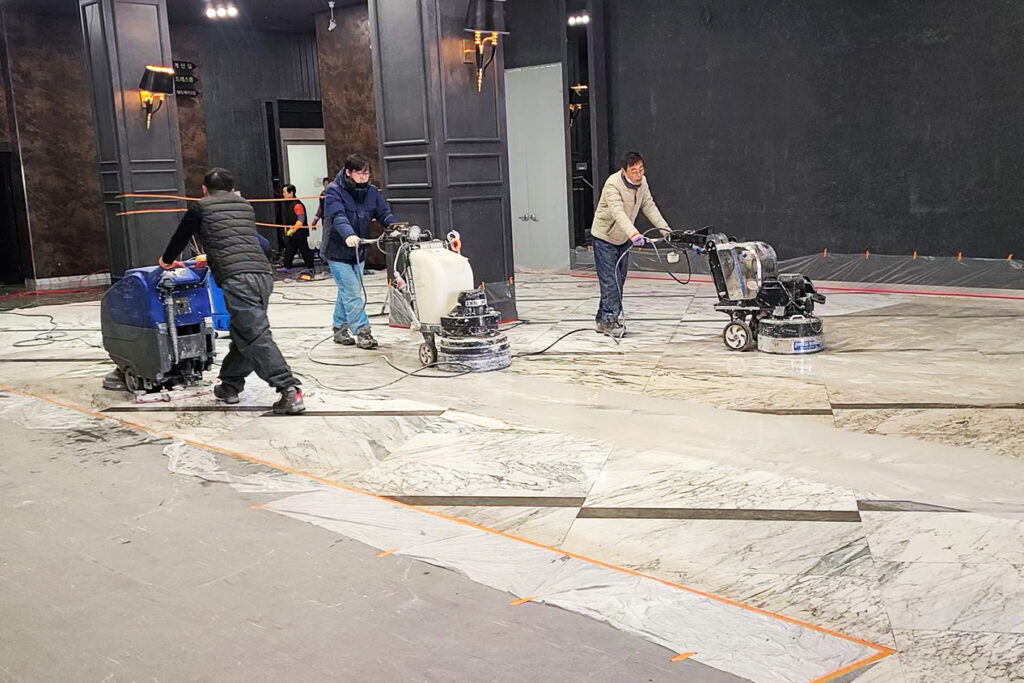 석재의 연마/광택 작업은 석재의 스크래치와 마모를 없애고 광택을 복원하는 작업입니다.